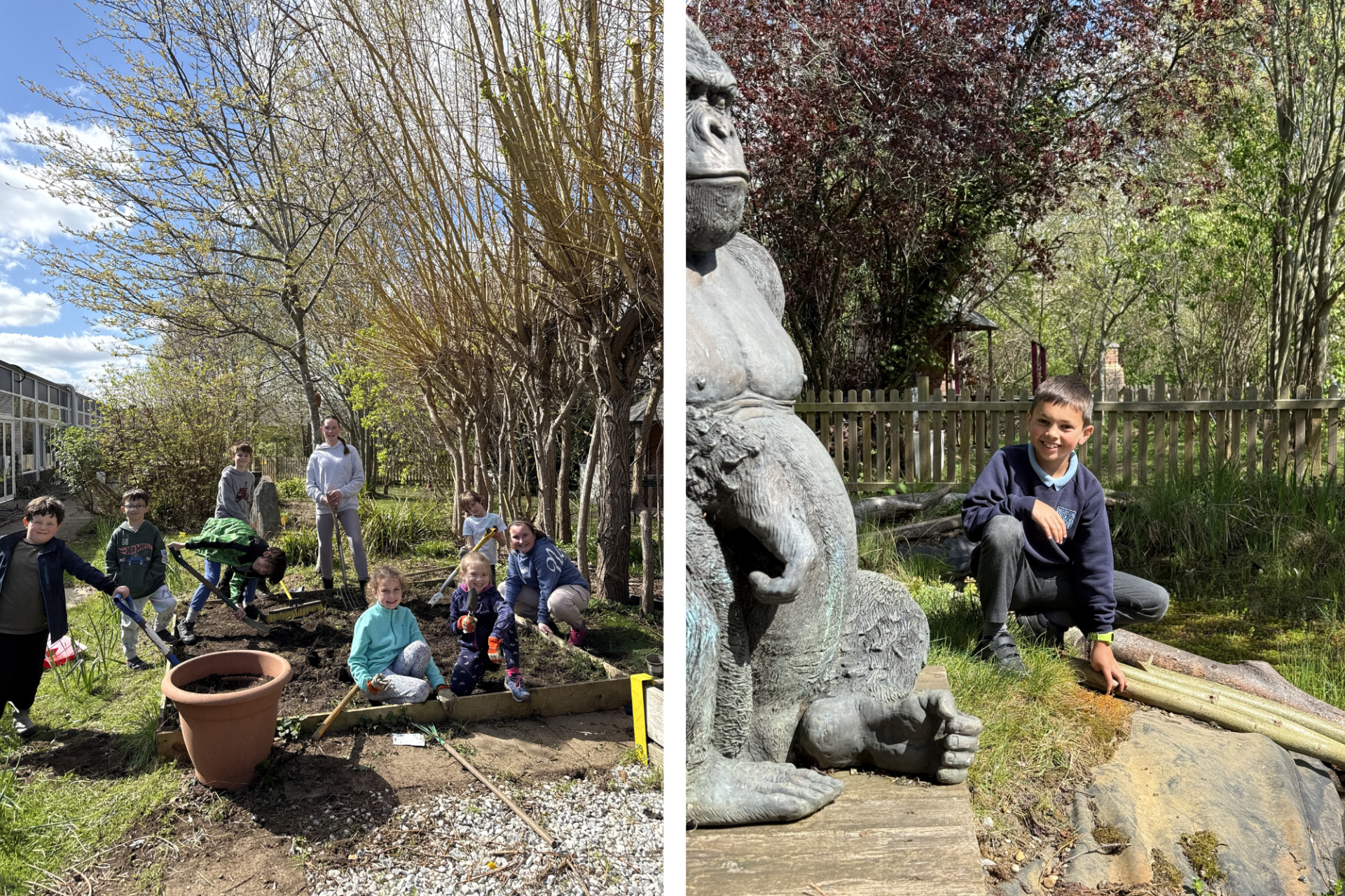Over the Easter Holidays, Miss Gray was joined by some Eco Club members (and helpful siblings), to clean and tidy up the pond and environmental area. They did a great job and the pond is already looking a lot healthier.