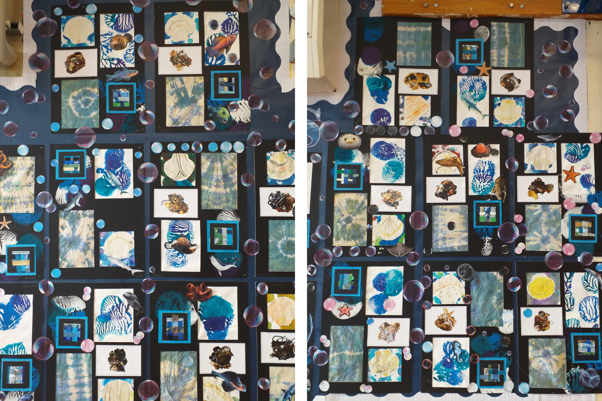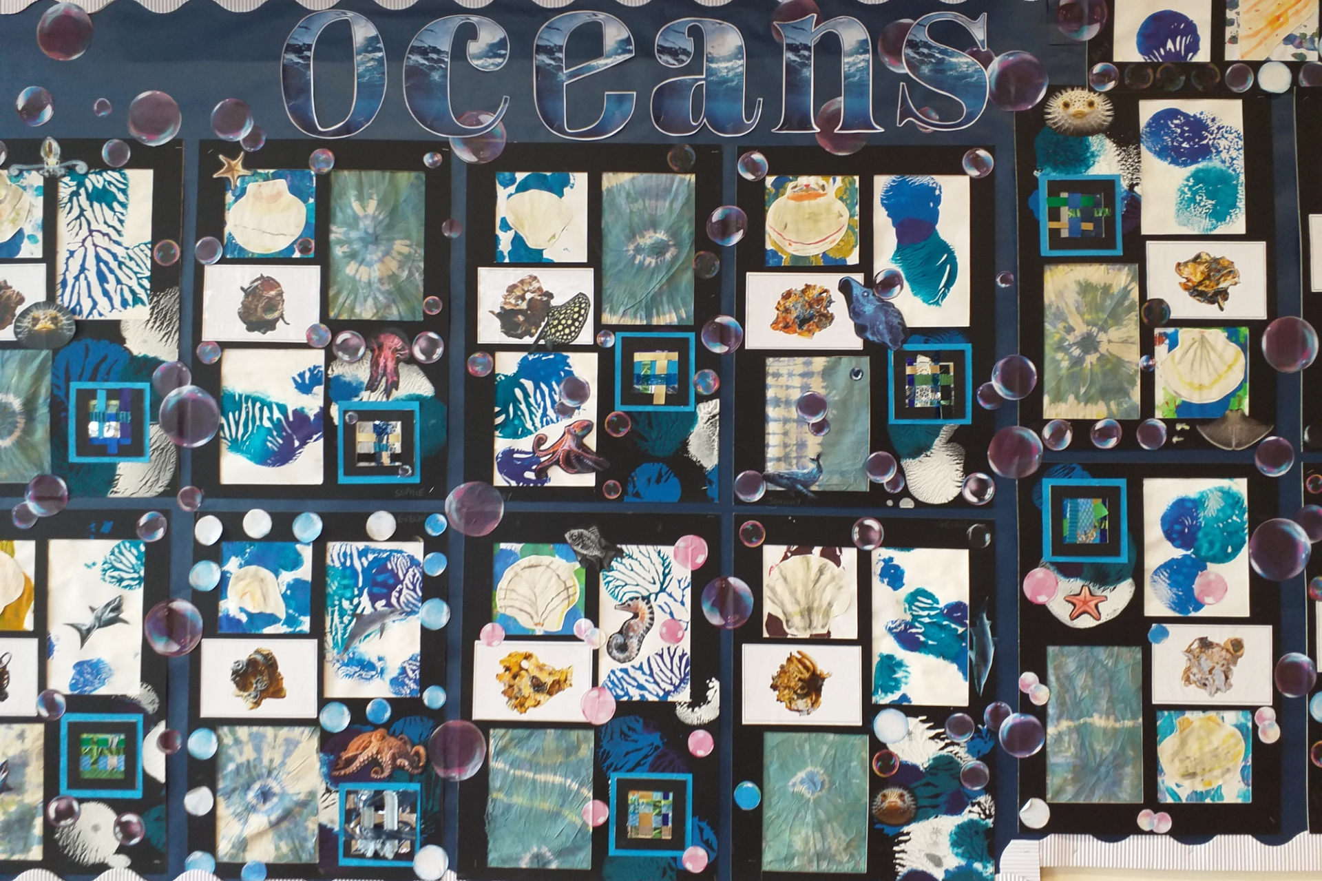 In art, the children used a variety of different techniques to create ocean themed pieces of art, which were then mounted to create amazing ocean mood boards.