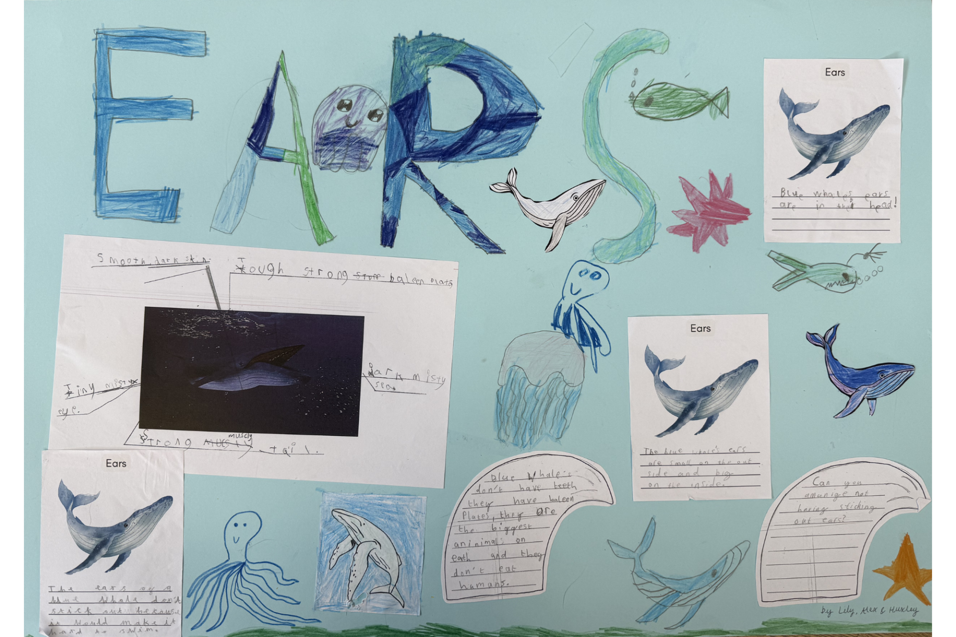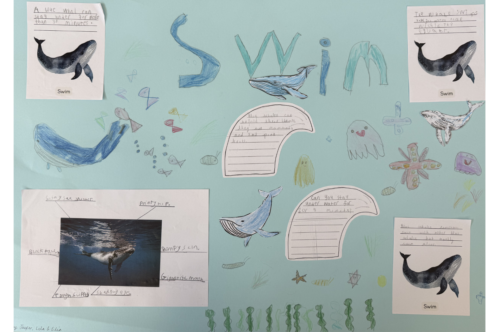 Year 2 have been busy learning all about oceans this term across a few subjects! In English, we've been reading a non-fiction book about blue whales, a topic the children are now all experts in. In groups, the children were given a specific area of a blue whale to write about and together labelled illustrations, wrote captions, questions and statement sentences and drew lovely images to create a big page for our massive class book. The results were brilliant and when put together, the book looks very impressive!